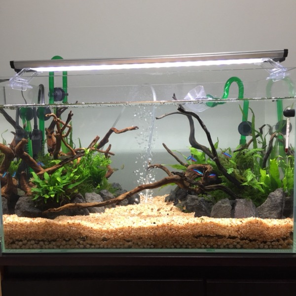南米がテーマの水槽です。ブラックウォーターで現地っぽい感じにしています。以前...
