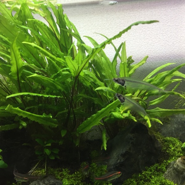 トリミングしてクリプトコリネの根元の密度を下げたらグローライトが遊ぶようにな...