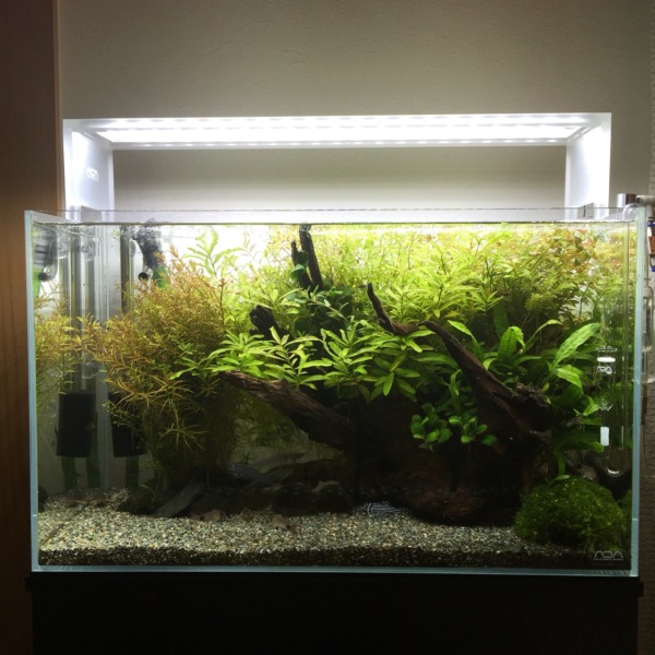 60cm水槽の新規立ち上げで、とりあえず石と流木だけ配置したんですが、水草を何に...