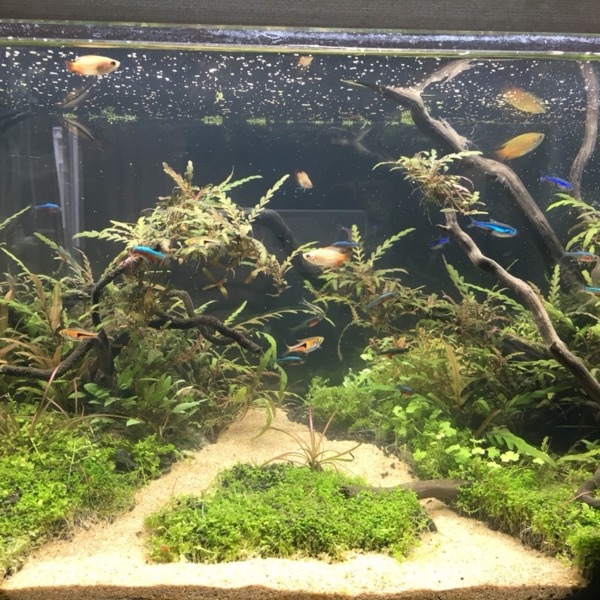 この水槽どうしましょう?なにかいいレイアウトないですか?1500円だったので、衝...