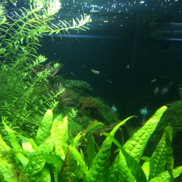 餌とトリミング後の水草が浮いてますが色々試し中