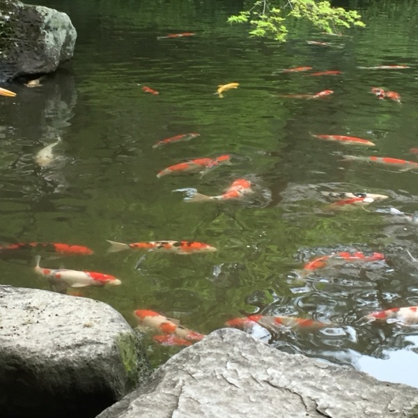 白金台 八芳園の鯉とサギ サギは近づいても全然逃げませんでした。