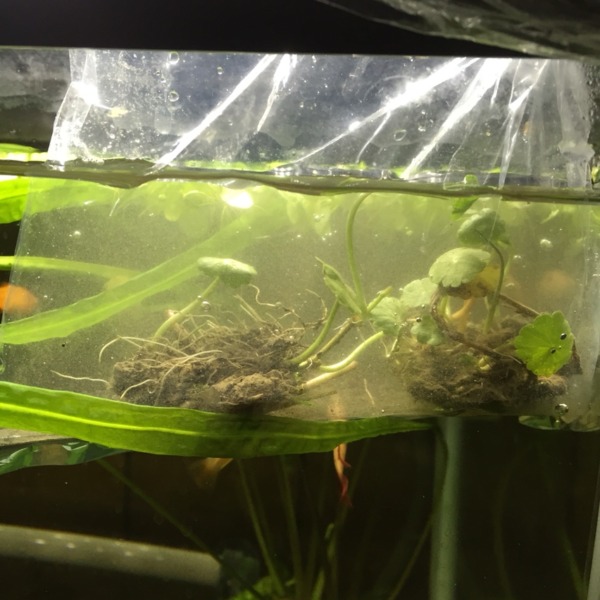 川から採取してきた多分ウォーターマッシュ? 朝とりあえず水につけた!
