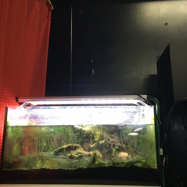 初めての水槽です。ネオンテトラとハイフィンプラティです。