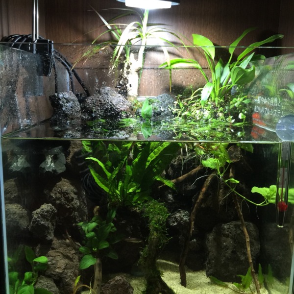 新しく30㎝キューブ水槽立ち上げました。アクアテラリウムもどき。