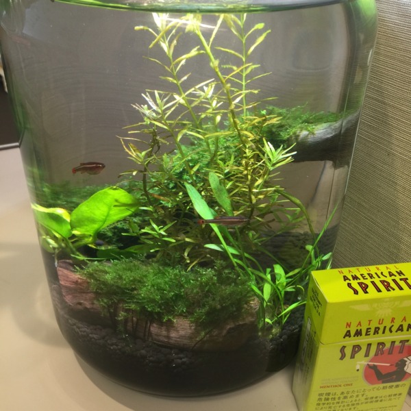 アカヒレ2匹のボトルアクアリウム。ビンは梅酒用5Lです。 茶ゴケ出てきたのでミナ...