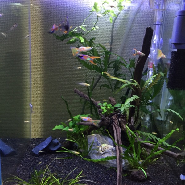 陰性水草水槽はグッピーの男の子水槽になりましたー(^^)やっぱ派手なのが入ると映...