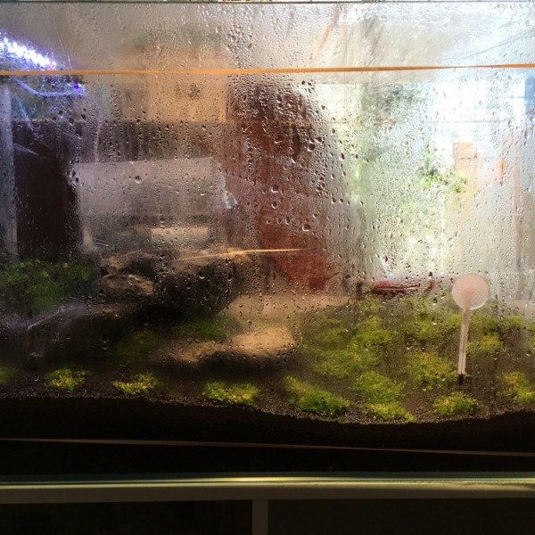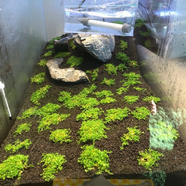 レイアウト変えました 左奥に葉をほぼ切って溶岩石に巻いたミクロソリウムが置いて...