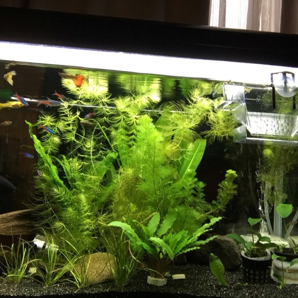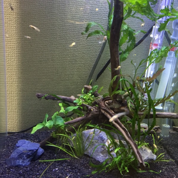この前立ち上げたグッピー水槽です。水草が届いたので入れてみましたー(^O^)ほぼ陰...