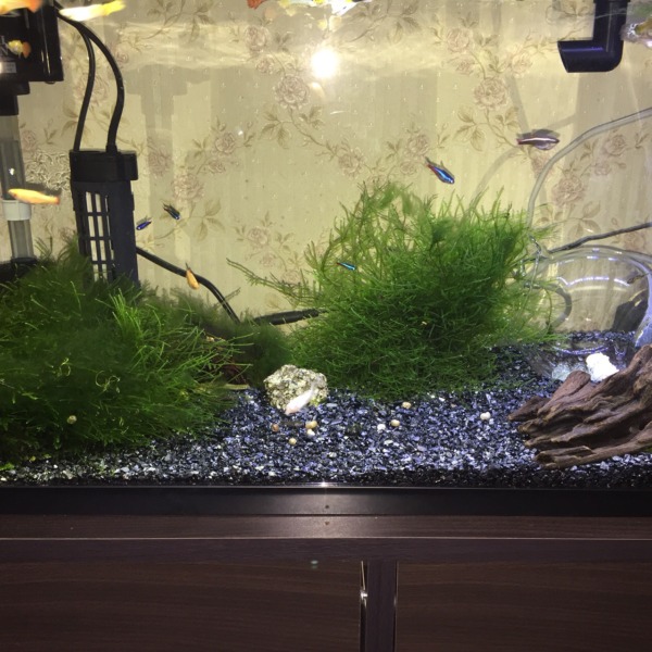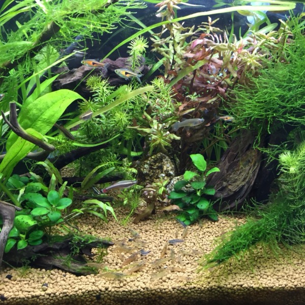 [ 記録 ] 2015年最後の水槽写真。奥のにごってるには、帰省前に急遽作った水草スト...