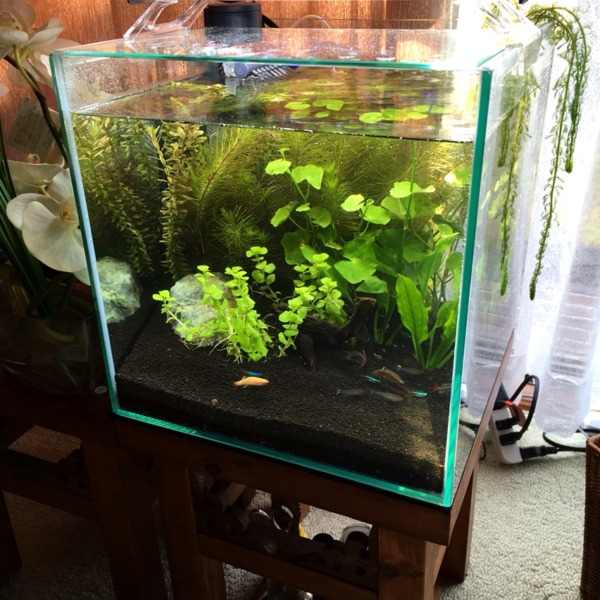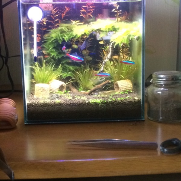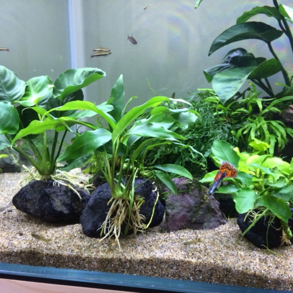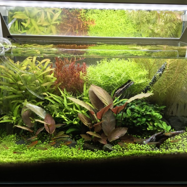 60cm水槽です。今日換水したのでスッキリしました。黒髭苔に悩まされています。