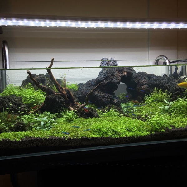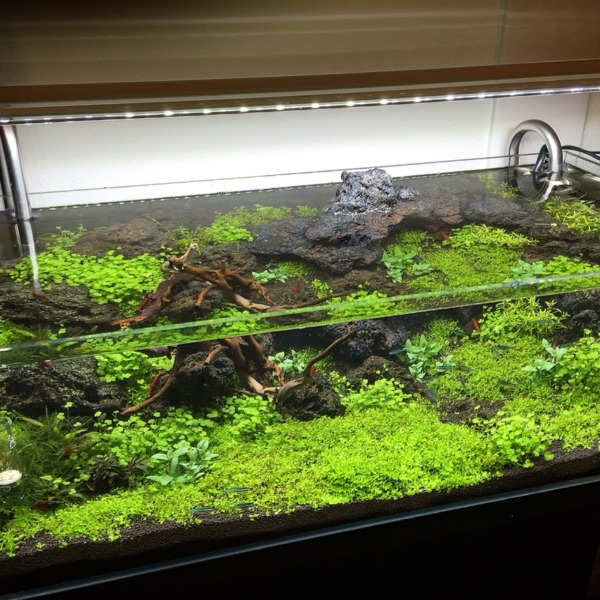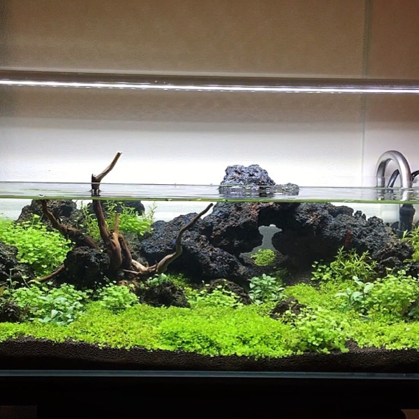 上から見るとこんな感じです。ソイルの追加と水草の抜き取り、植え直し、新しい水...