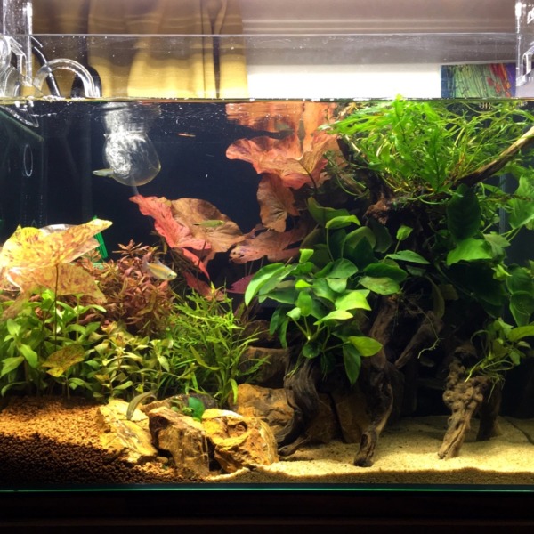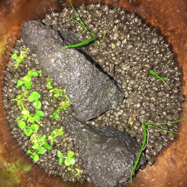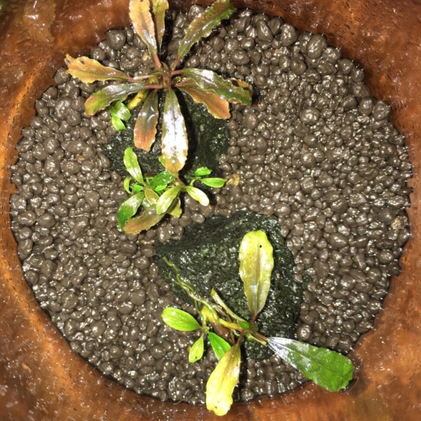 西アフリカ水槽のレイアウト途中です。西アフリカ産の水草ってあんまり売ってなく...