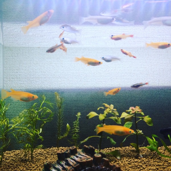 メダカ二種類とアカヒレ二種類を飼っています!底面フィルターでソイルはブルカミ...