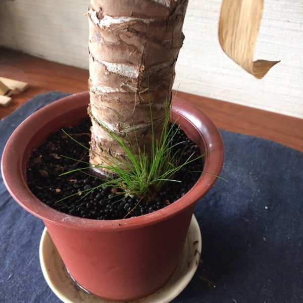 観葉植物の鉢に、 ヘアーグラス植えたら 地味に育っていた。