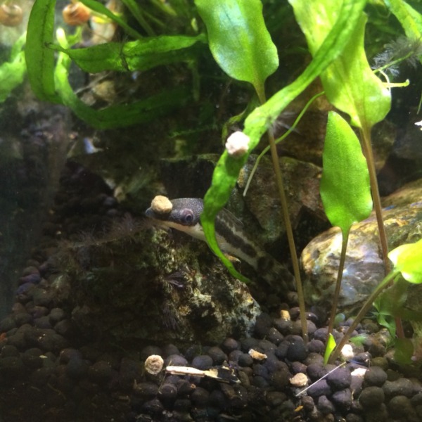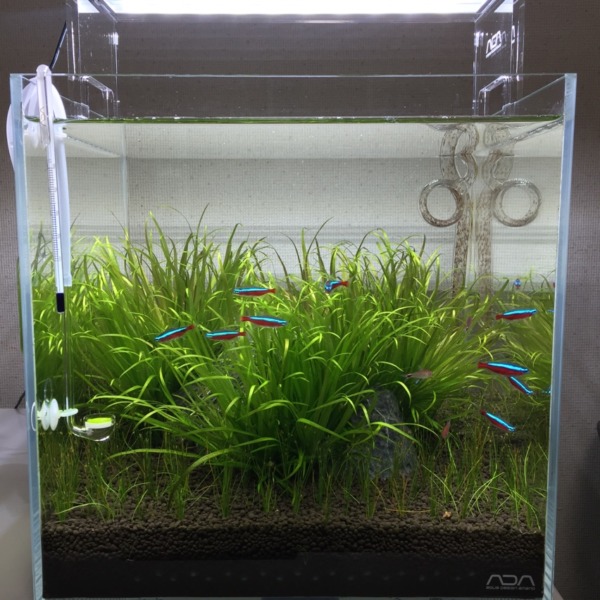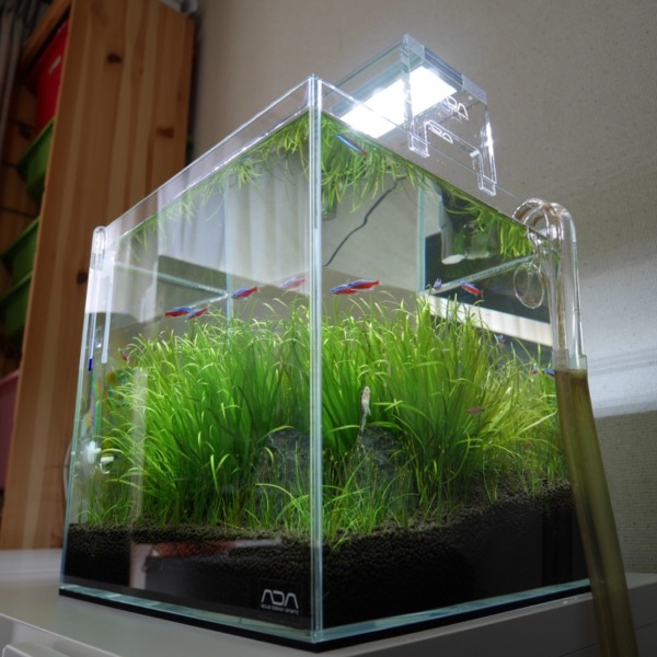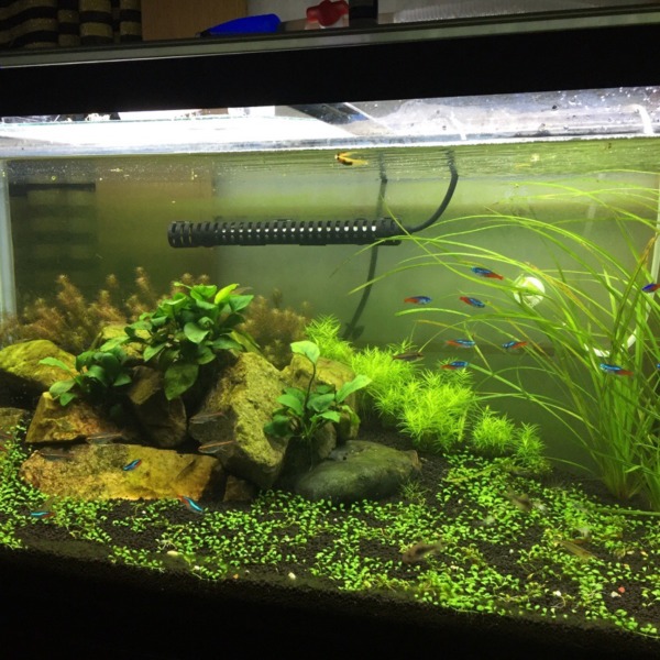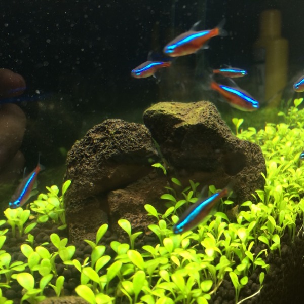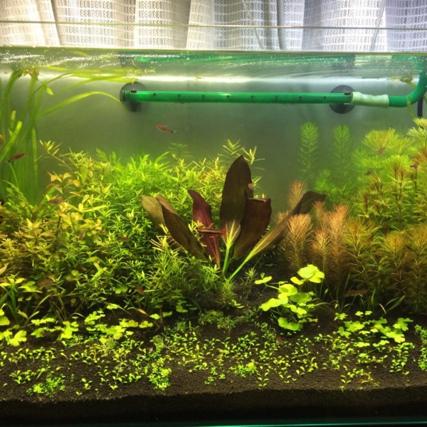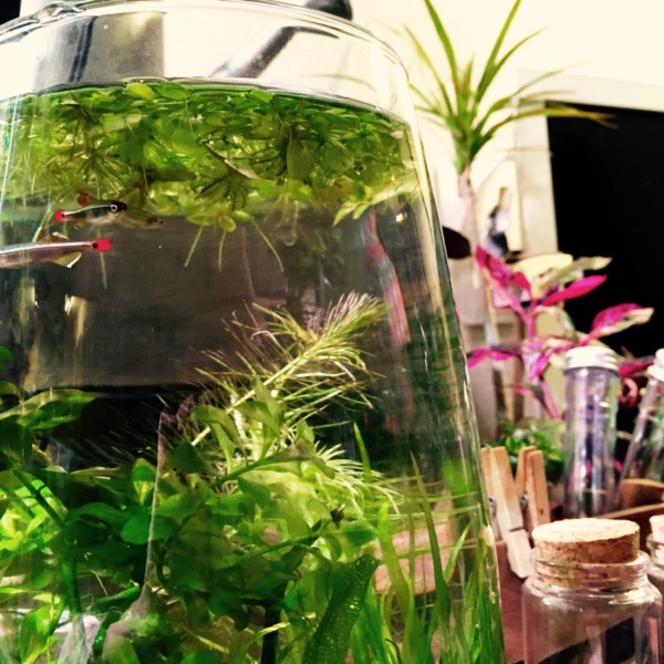 ボトルのアカヒレ水槽。メイン水槽と大違いで、苔ひとつ出ない( ;∀;)