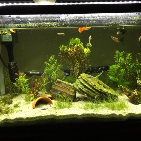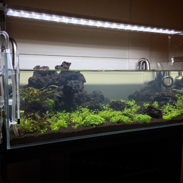 60%ほど濁りはとれました。ソイルが足りずに全景ソイルの厚みと、両サイドを多少盛...