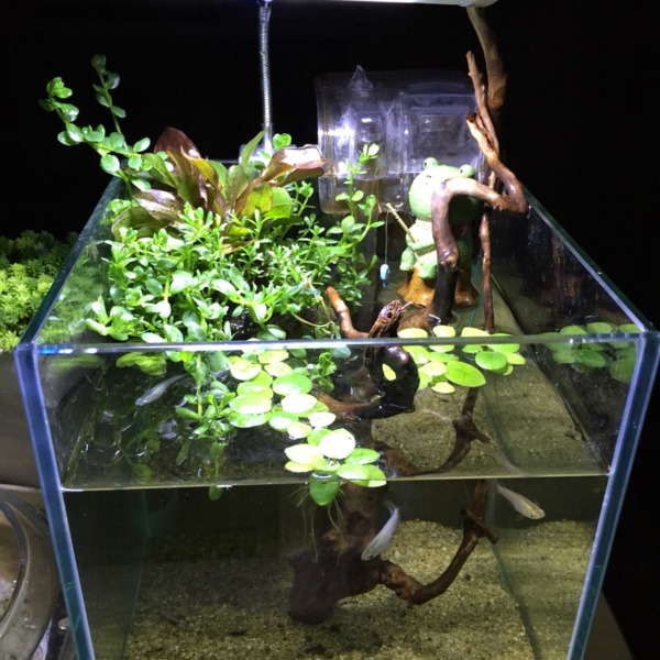 小さな水辺セット、メダカ水槽です。照明をLEDに替えてから、侘び草が絶好調です。
