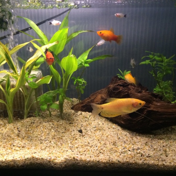 45㎝水槽です! グラミーと、ベタと、プラティーを混泳させてます! ベタは少し突...