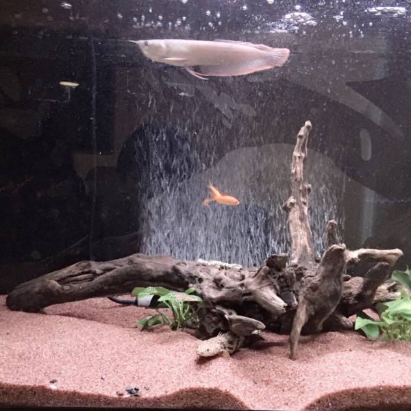 シルバーアロワナとエンドリケリーです! 小赤たべてお腹パンパンになってます!
