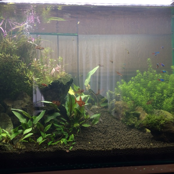 アクアリウム初心者です ウィローモスマットを今日作って見ました 今はグッピー一...