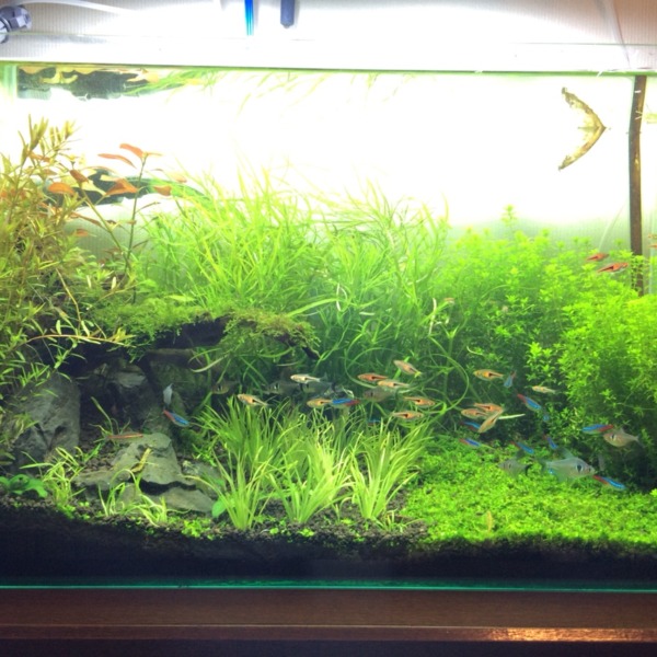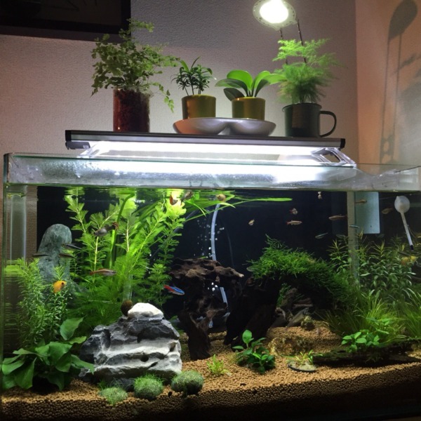 立ち上げました。いろいろ苔まみれで、ソイルまみれでアレですが…3ヶ月後が楽しみ...