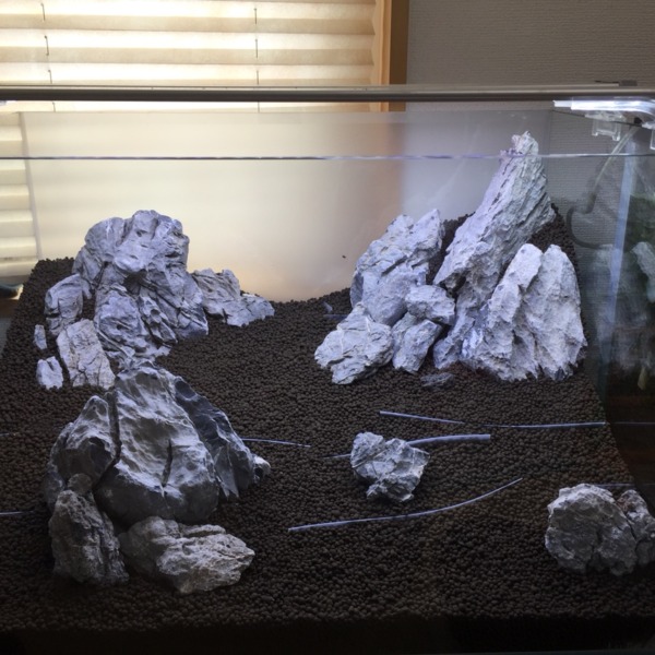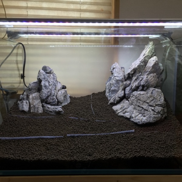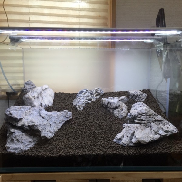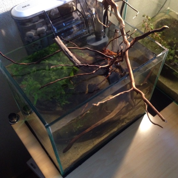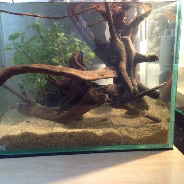 昨日作ったアベニー水槽 石、砂、水草無しで海っぽくと思ってたけど水草とか必須で...