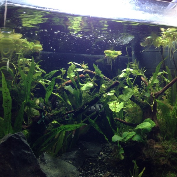 正面からから見たアベニー水槽 まだ初日やから水が少し汚いかな 今日帰る頃には綺...