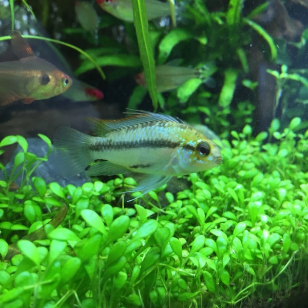アピストグラマ トリファスキアータ、デビューしました。なかなか発色がよくなって...