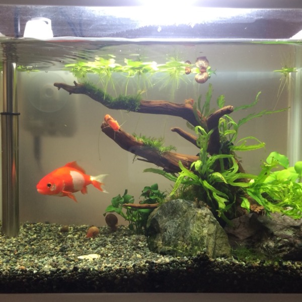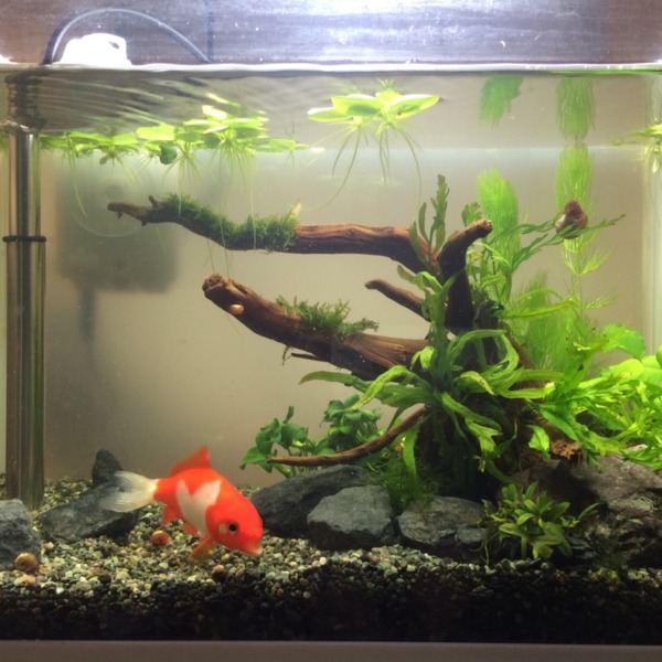 流木 水草等 余り物素材でちび金魚の水槽をプチリニューアル