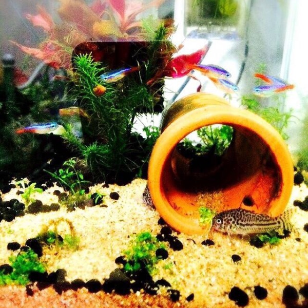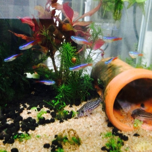 底が汚いですがコリ&ネオン水槽です(*^◯^*)30cmキューブに移す予定です!