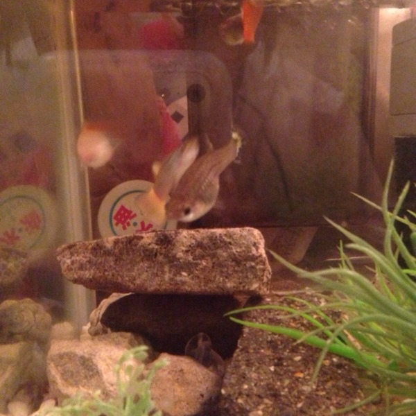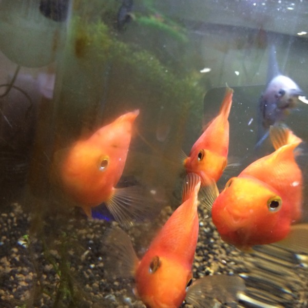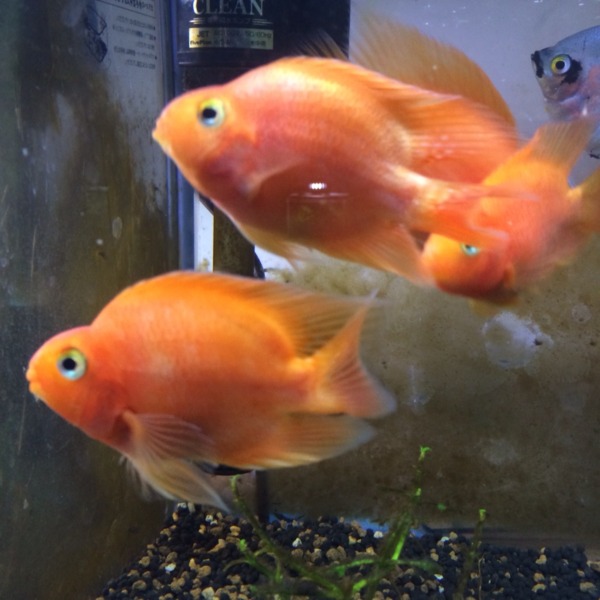 パロットちゃん水槽に近寄ると餌を欲しがって水槽の左上のほうに集まってきます(^^...