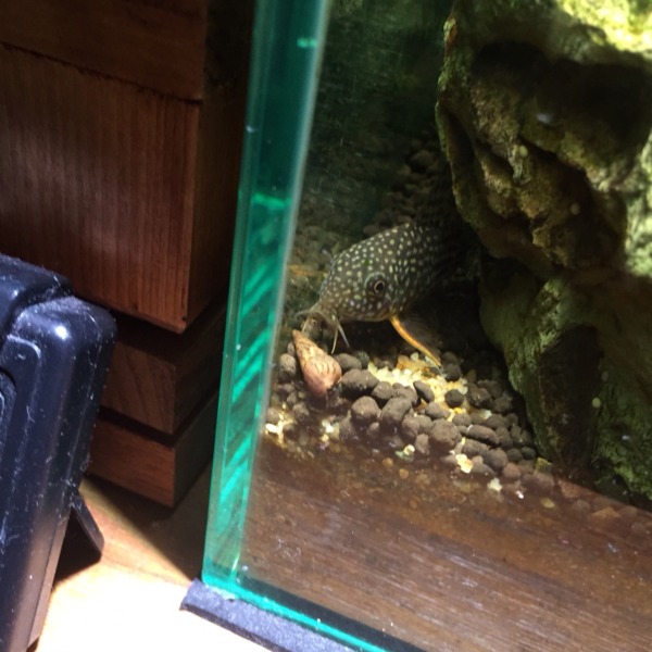 水槽に見たことのない細長い巻貝が居ます(・・;) 1.2cm位あります。これなんだかわか...