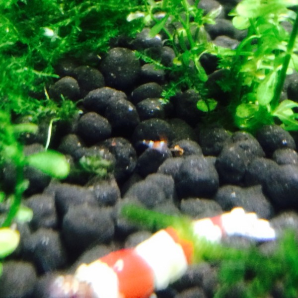 やっと稚エビ発見!この2週間で大人三匹☆になってしまいましたが、生まれて良かっ...