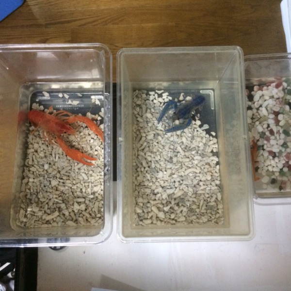 水槽の中の貝が増えてたんで、割ってあげたらばくばくたべてます。