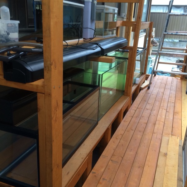 ウッドデッキと水槽台完成。