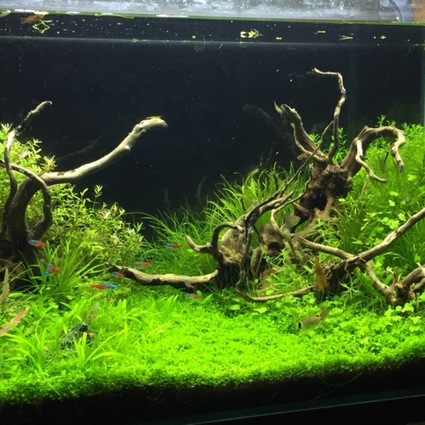 流木のコケ取りで水槽から出したついでに模様替えしてみた。なんかしっくり来ない...