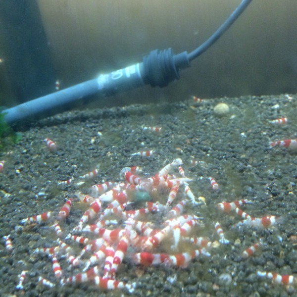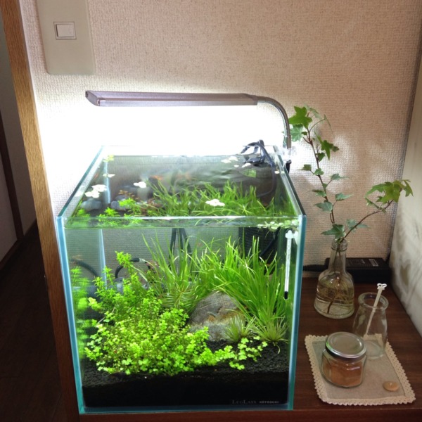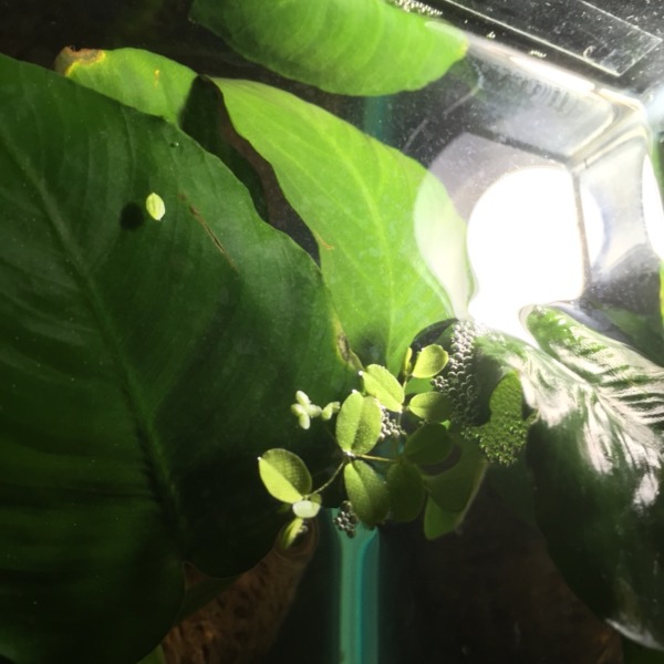 ショップで色々買いつつ、小さい浮き草がいっぱい浮かんだレイアウトの水槽があっ...