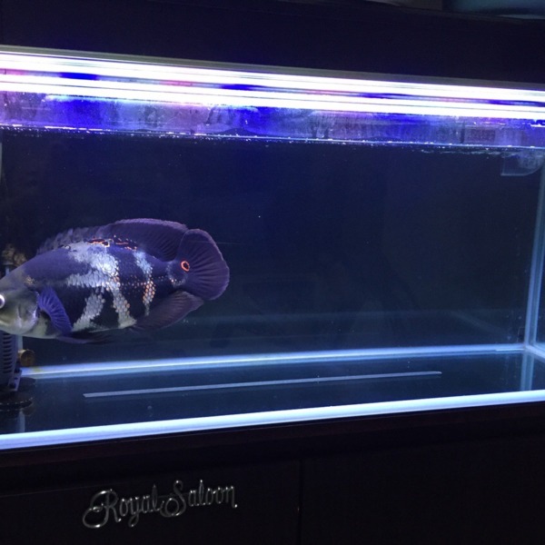 左の水槽に赤虫を入れるとオスカーはガラスにアタックします(笑) 奥のカウンターが...