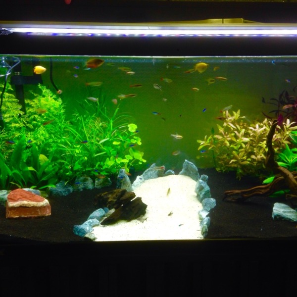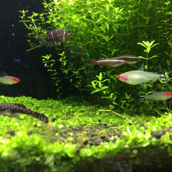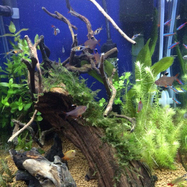 花瓶水槽のダイヤモンドテトラです。アマゾンっぽくしたいのでブラックウォーター...