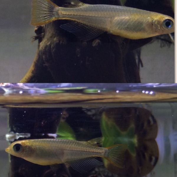 画像は2枚の画像を繋いだものです。 今朝観察していて見つけたのですが、めだかの...