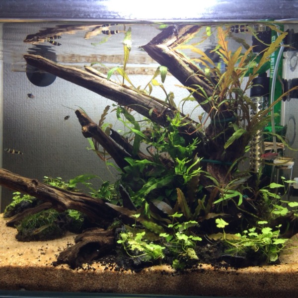 立ち上げ一ヶ月。 油膜はフィルターの掃除で大分安定です。 アクアフォレストの動...