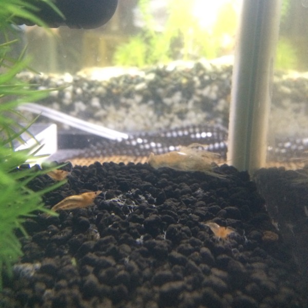 極火蝦、レッドファイヤーチェリーシュリンプの稚エビ。 うっすらとしか色が出ない...