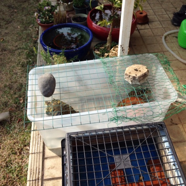カメ達も外に出した!(◎_◎;)