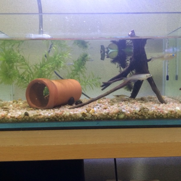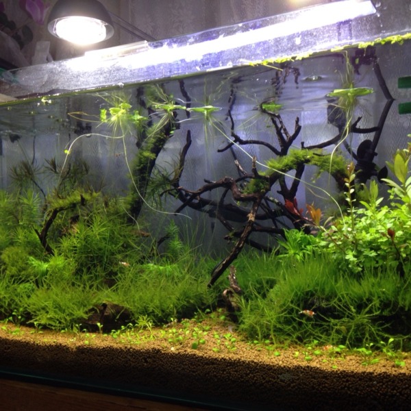 アナカリスを新しく買い、根元に巻いた重りが目立たないようなレイアウトにしてみ...