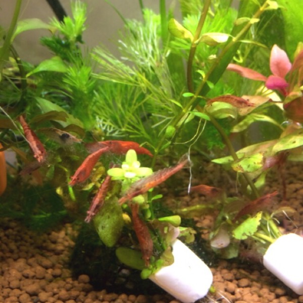 コケだらけになった水草をエビ水槽に投入。チェリー大集合(^_^)
