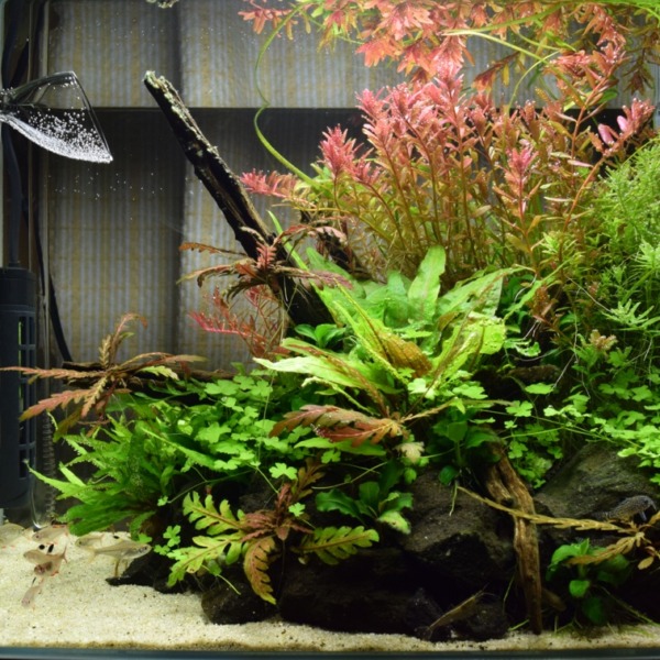 立ち上げ4日目 陰性水草メイン まだトリミングをしていないのでバラバラ伸びていま...