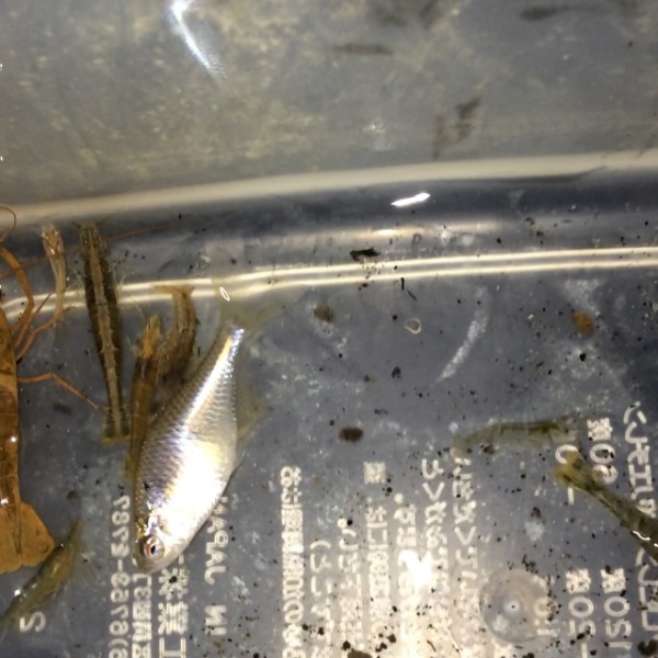 ガサガサで取ってきました。 タナゴ、メダカ、手長海老、ヌマエビ、チビザリです。