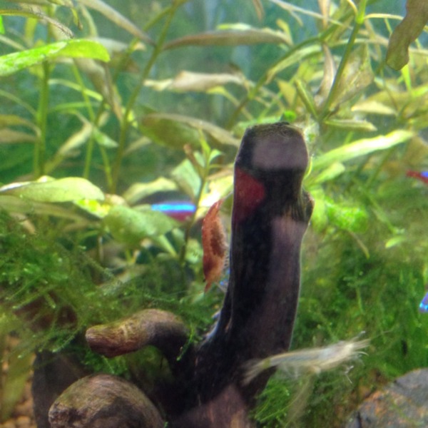 赤いミナミヌマエビが卵をつけてました。