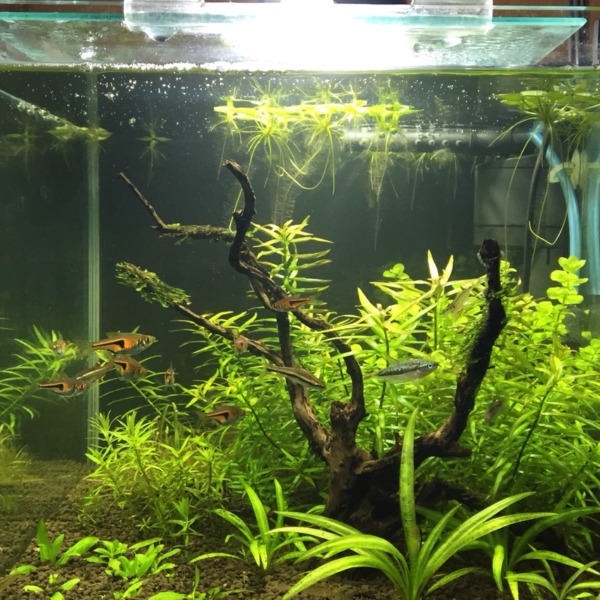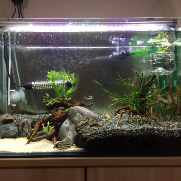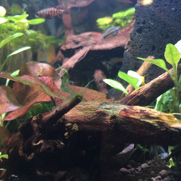やっと流木沈んでとりあえずレイアウト完成しました。